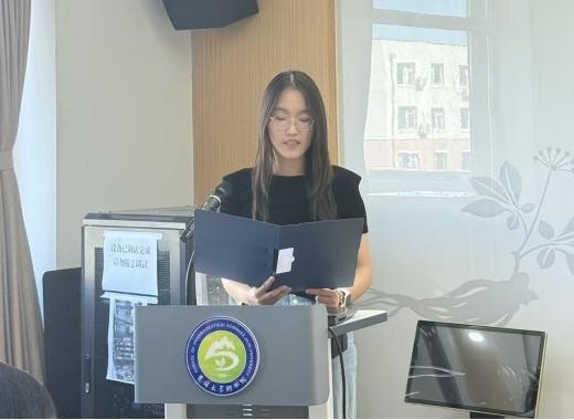 2025级硕士研究生代表刘一围绕吉林大学“求实创新、励志图强”的校训,深入诠释其精神内涵,呼吁新生以校训为指引,努力成长为符合新时代要求的高素质医药科研人才。