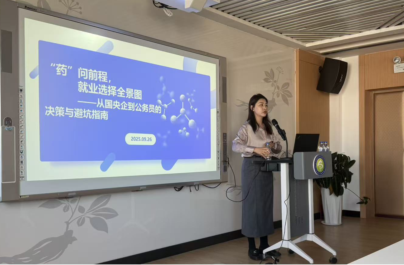 特邀吉林大学学生就业创业指导与服务中心指导科科长、就业创业指导教师孙卓,为全体毕业研究生作了题为“药问前程,就业选择全景图”的专题就业指导讲座。