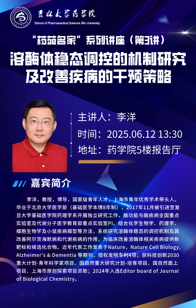 “药苑名家”系列讲座(第3讲)——溶酶体稳态调控的机制研究及改善疾病的干预策略