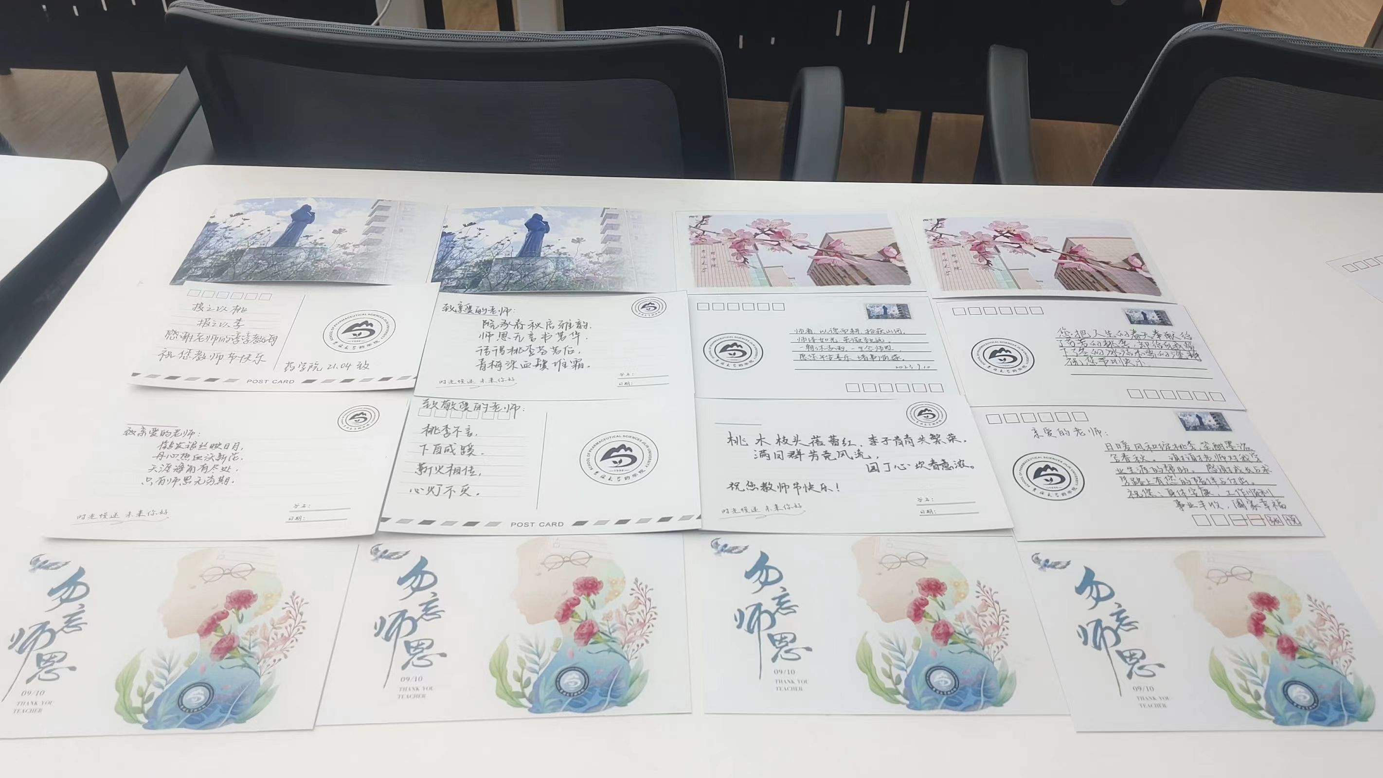 的领导,并向老师们表达教师节的祝福。收到同学们赠予的明信片和祝福后,惊喜之余,老师们更多的是感动。那份沉默而深厚的感情,得到了笨拙而又真挚的回应。