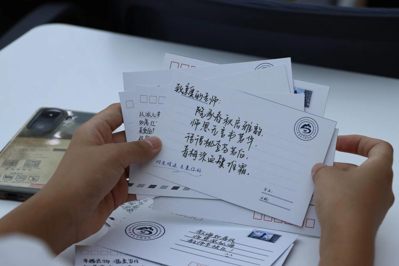 定制明信片,活动当日有40余名同学到场,诚挚地写下自己对老师的深深感恩和祝福。活动现场,同学们思量许久才肯下笔。一横一竖,或是想到了一句句恳切的话语;一撇一捺,或是回忆起一堂堂精彩的课程。只是小小卡片,写不完星辰大海;寥寥数语,道不尽师生情谊。