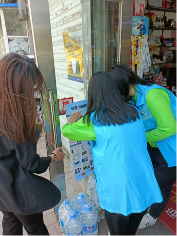 的志愿者们准时来到普庆社区,社区党委书记刘志洁、党委副书记钱琳琳对大家的到来表示热烈欢迎,在简单的介绍此次志愿服务活动的工作安排和注意事项后,同学们有序地分为8个小组,跟随社区网格员走进周边住户协助发放长春“百日攻坚”安全知识宣传单并向周边居民介绍安全知识。尽管天气炎热,烈日当头,同学们仍以高昂的热情和饱满的状态走进一家又一家住户,将安全知识宣传给周围居民。