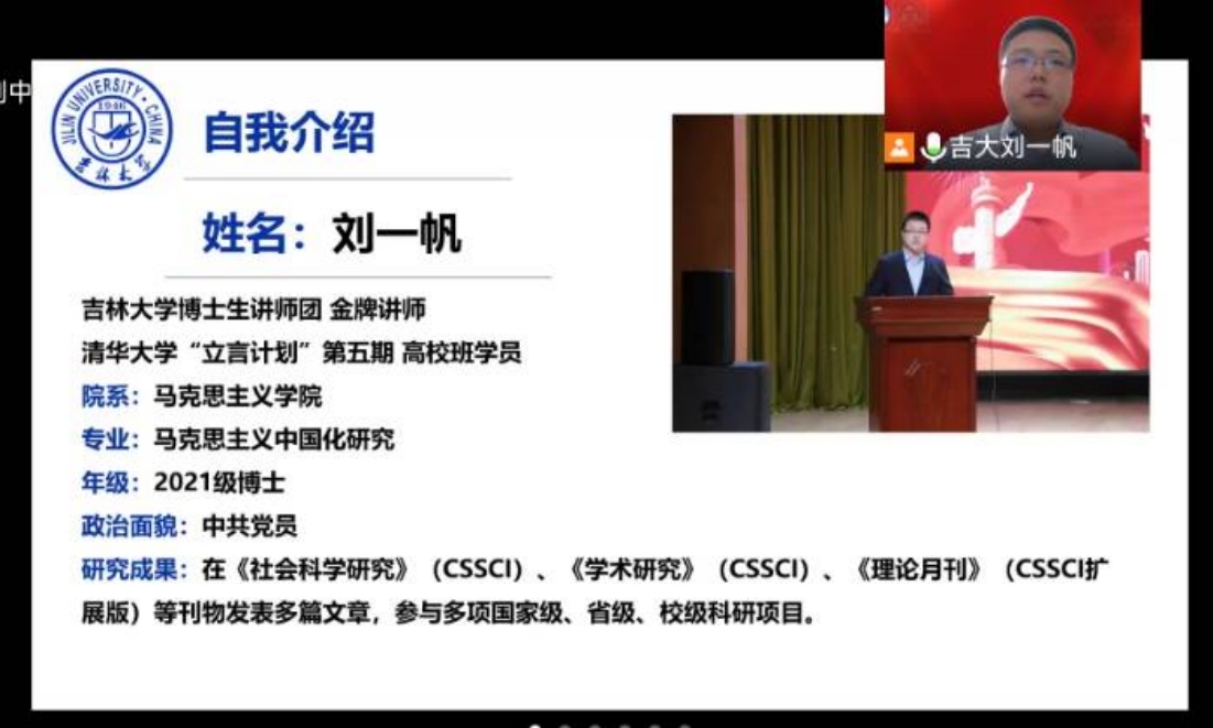 组织全体研究生收听了“喜看稻菽千重浪——新时代的历史性成就和历史性变革”吉林大学博士生讲师团线上宣讲系列活动的第十一讲,本次讲师为吉林大学马克思主义澳门六合彩开奖网