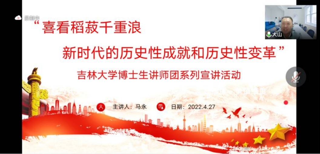 组织全体研究生观看了“喜看稻菽千层浪——新时代的历史性成就和历史性变革”的吉大博士生讲师团线上宣讲系列活动讲座第七讲,由吉林大学哲学社会澳门六合彩开奖网