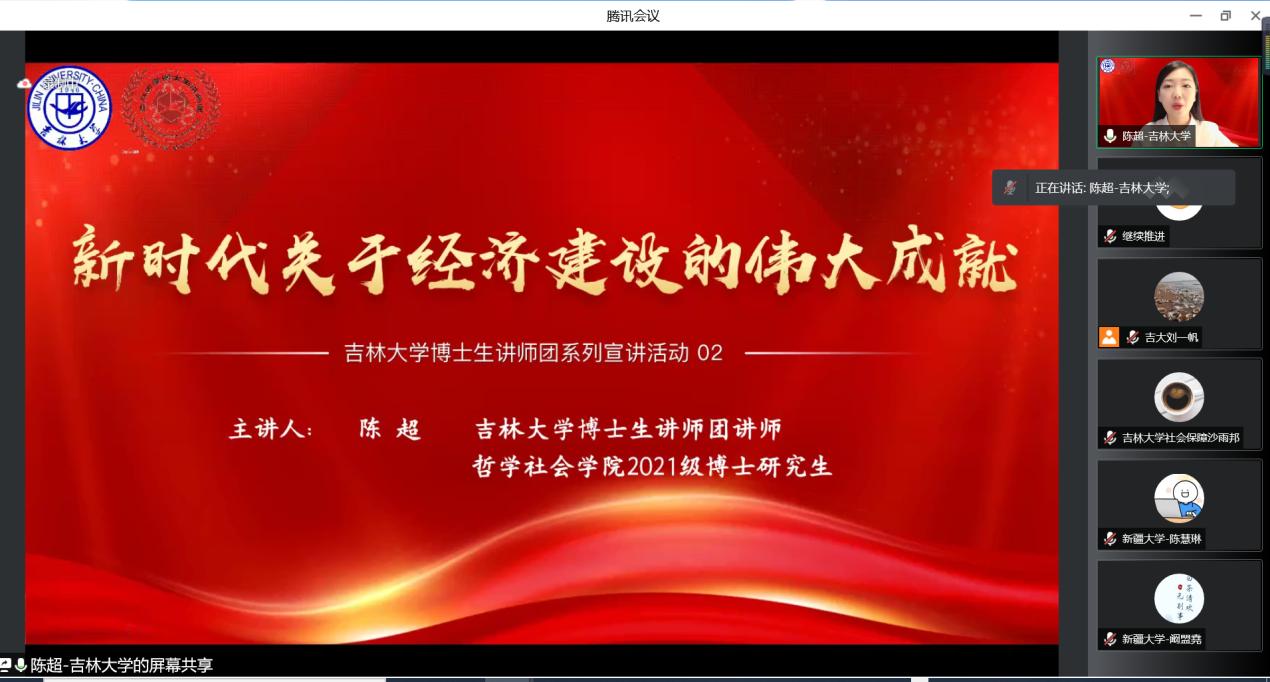 2021级博士研究生陈超博士以《新时代关于经济建设的伟大成就》为题,向我们系列讲述了党在经济建设方面的历史性成就以及新时代中国经济新发展的新成果。