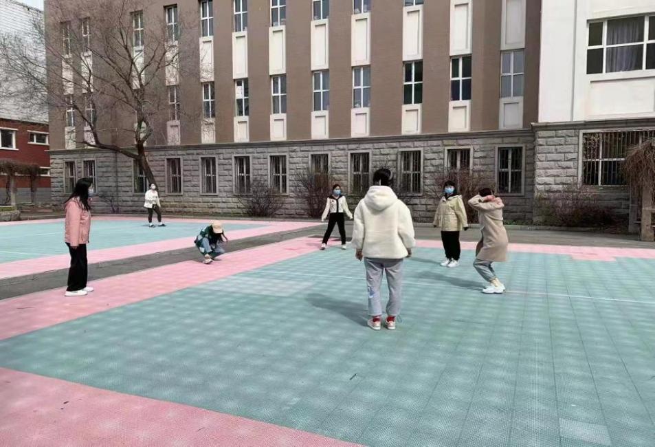 后院一排排小树上也开出了淡粉色的桃花,阵阵春风拂过,花瓣洋洋洒洒地落在同学们灿烂的笑容里,同学们在舒展筋骨的同时也舒缓了心情。活动结束后,学生们进行扫码消毒,有秩序地回到寝室。