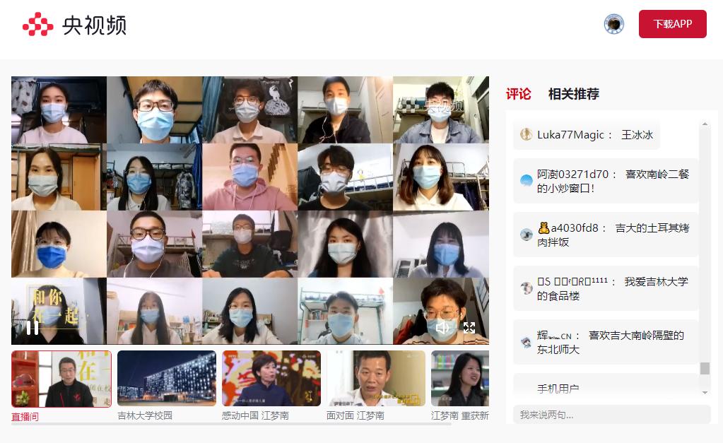 直播期间白岩松老师以及江梦南师姐主要以在线互动问答的方式与直播间的吉大师弟师妹们以及观看直播得各位网友们进行分享交流。首轮互动问题主要有:我最爱吉大的什么?吉林最值得打卡的地方?以及封闭在宿舍,那怎么运动?梦南师姐说到她最爱吉大的杏花,是的,最美人间四月天,每年的四五月份就是吉大杏花开的最美的时候。有同学说到最爱吉大的CBD日新楼—— 一座集万千美食、及日常娱乐电影院、游泳馆、健身馆、台球厅、大超市、百货商场等为一体的校园综合商业中心。有同学表示最喜欢吉大的自习室,无论是环境舒适的各大图书馆还是平时上课的教学楼都是自习学习的好去处......吉林值得打卡的地方有很多,如白岩松老师所推荐的净月潭国家森林公园和梦南师姐所推荐的松花湖滑雪场,此外还有伪满皇宫博物院、长白山景区、长春世界雕塑公园、长影世纪城、东北虎园地质宫等,其中多地还被前段时间央视热播的电视剧《人世间》取景拍摄。关于封闭在宿舍如何运动的话题,梦南师姐建议大家可以力所能及地做一些力量训练,白岩松老师建议我们可以做一些思考的训练,思考也是一种运动。疫情期间,什么东西是不需要到外面去获得的呢?是书籍,同学之间可以相互交换,也可以在网上找到电子版,有很多的好书值得在这段春光中被读,一定会有很多收获。