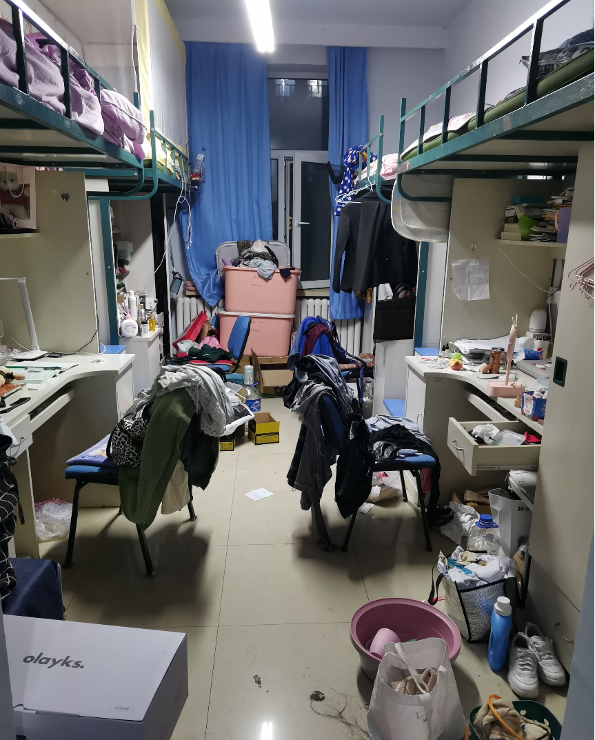 但也有个别寝室的卫生情况不太理想,出现物品摆放杂乱无序、垃圾未及时清理、空气质量较差、饲养小动物等情况。查寝过程中学生干部对这些问题都做出了及时指正。