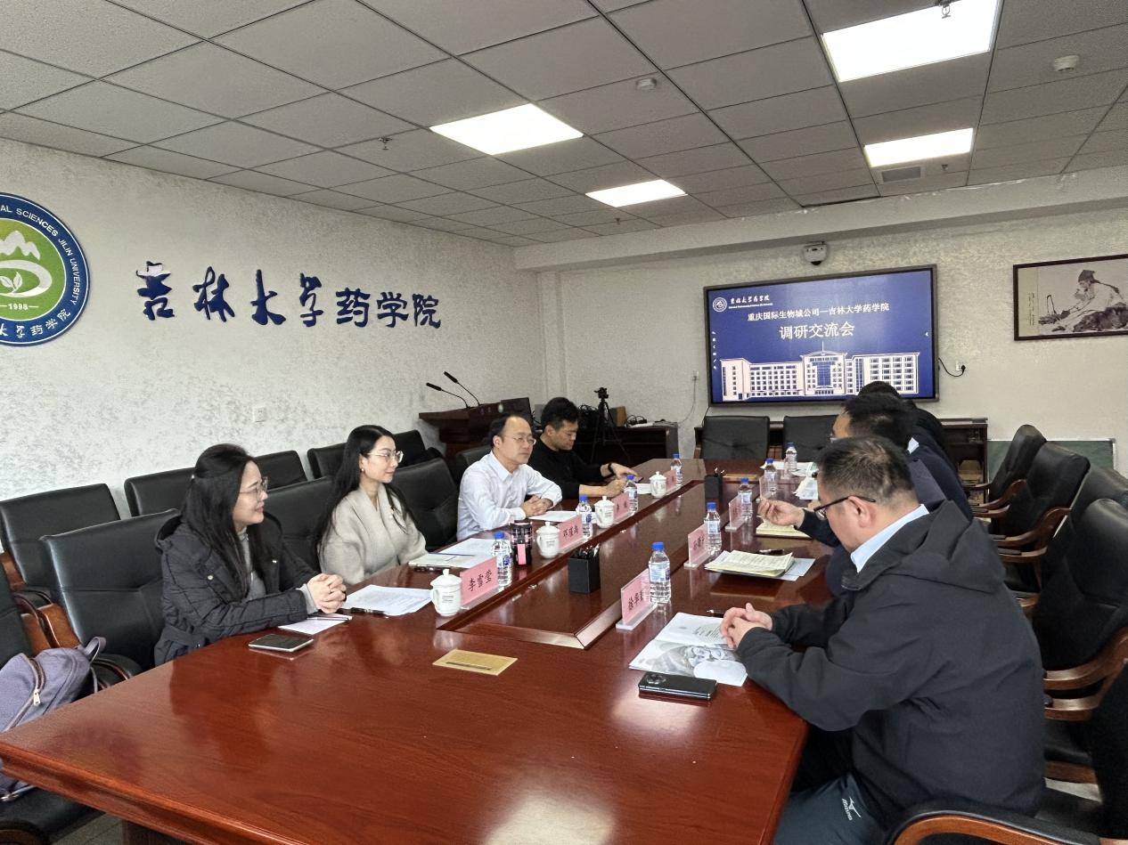 2025227,重庆国际生物城公司李锐董事长代表团一行4人到访吉林大学药澳门六合彩开奖网 ,就项目合作开展调研交流活动。此次调研旨在加强双方在生物医药领域的合作,推动产学研深度融合,共同促进生物医药产业创新发展。吉林大学药澳门六合彩开奖网 院长项金宝以及部分班子成员参加了此次座谈交流会议由院党委书记孙曙光主持。