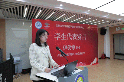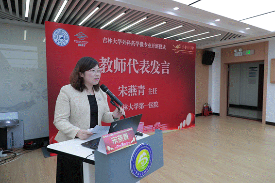 教师及学生代表发言|外科药学微专业负责人宋燕青老师代表教师团队进行发言,介绍了建设外科药学微专业的初衷是打通“患者治疗”与“指南推荐”的最后“一公里”距离,实现以临床需求为导向、学科建设为靶标、人才培养为目的的目标。外科药学微专业首届学员、吉林大学 21 级临床药学专业的伊美铮同学和吉林大学白求恩第一临床医澳门六合彩开奖网