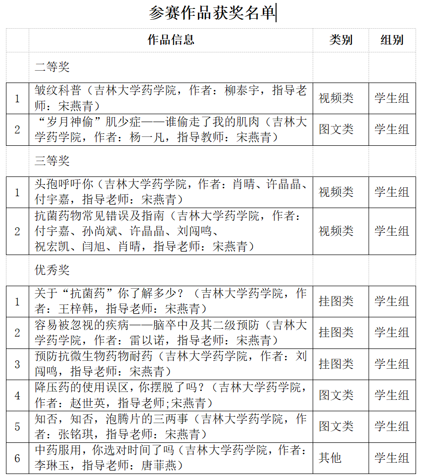 学子表现优异,共获得多个奖项,展现了药学科普创作的独特魅力。