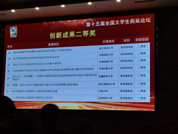 “全国大学生药苑论坛”是全国高等教育药学类顶级赛事,是全国药学专业优秀学子展示科技创新能力和创业成果的平台,被誉为“药学挑战杯”。2023年10月19日,由全国药学类院校大学生专业技术与实验技能竞赛组委会主办,沈阳药科大学承办的“第十五届全国大学生药苑论坛”在沈阳药科大学圆满落幕。