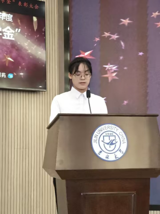 接着,由本科获奖学生代表2020级临床药学专业的曹辰瑀同学发言。曹辰瑀同学首先对吉林省博大伟业制药有限公司对澳门六合彩开奖网