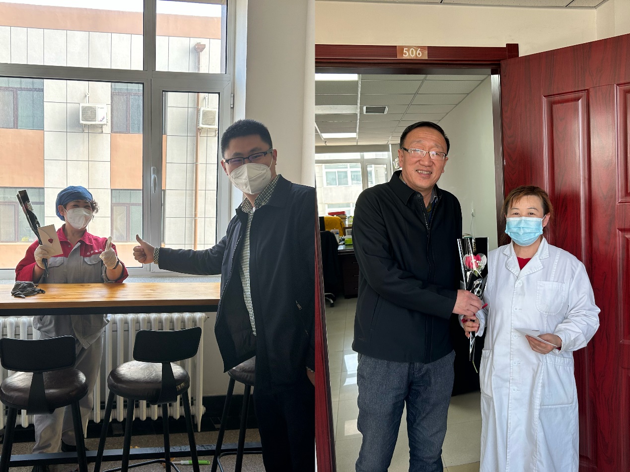 领导班子为女教工送来了节日蛋糕,并送上节日祝贺。