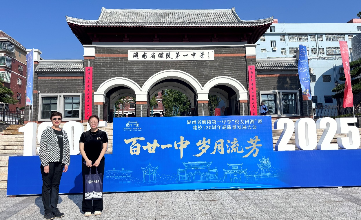 招生宣传组杨晓虹教授和赵超越老师参加了湖南省醴陵第一中学“校友回湘”暨建校120周年高质量发展大会。此行受到醴陵第一中学书记易军、醴陵一中教育集团负责人袁志中、童贝平老师的热情接待。